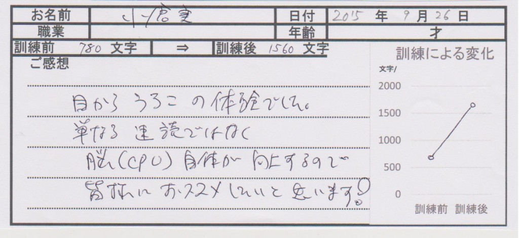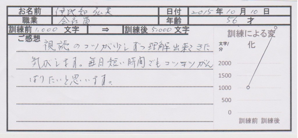 (伊地知さま 速脳速読体験レッスン受講)