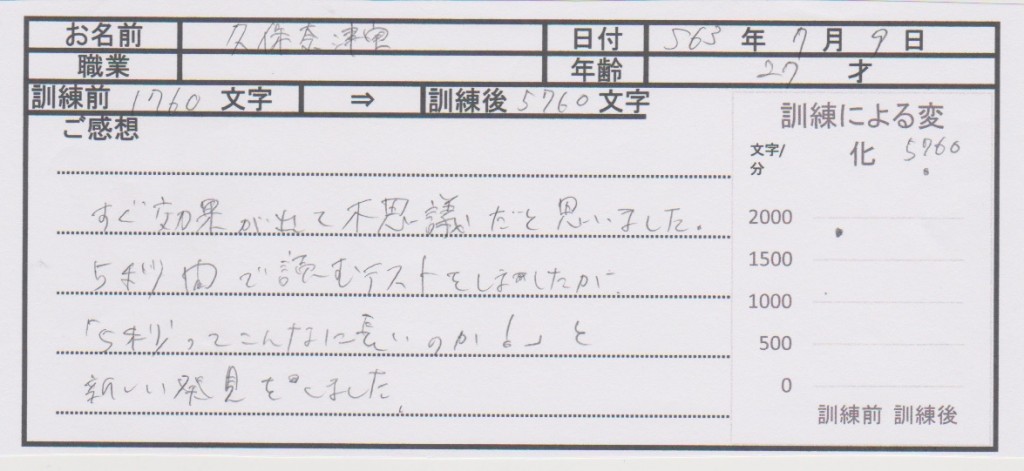 (久保さま 速脳速読体験レッスンを受講)