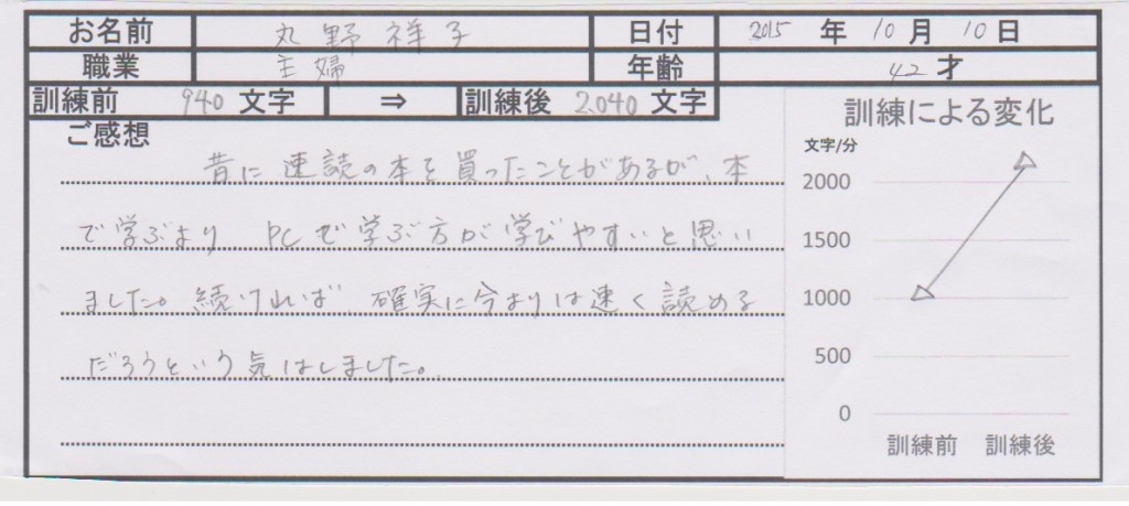 (丸野さま 速脳速読体験レッスンを受講)